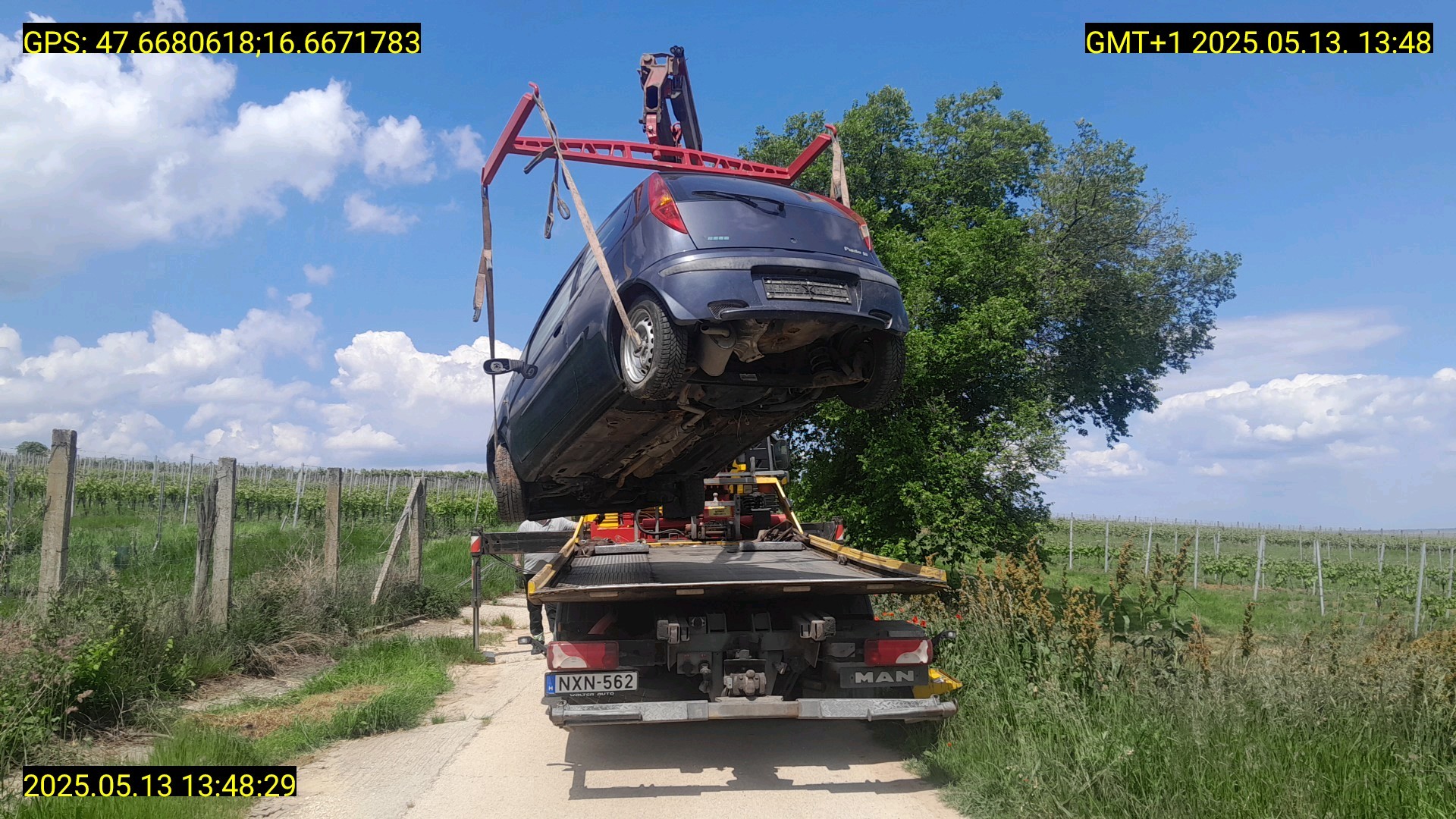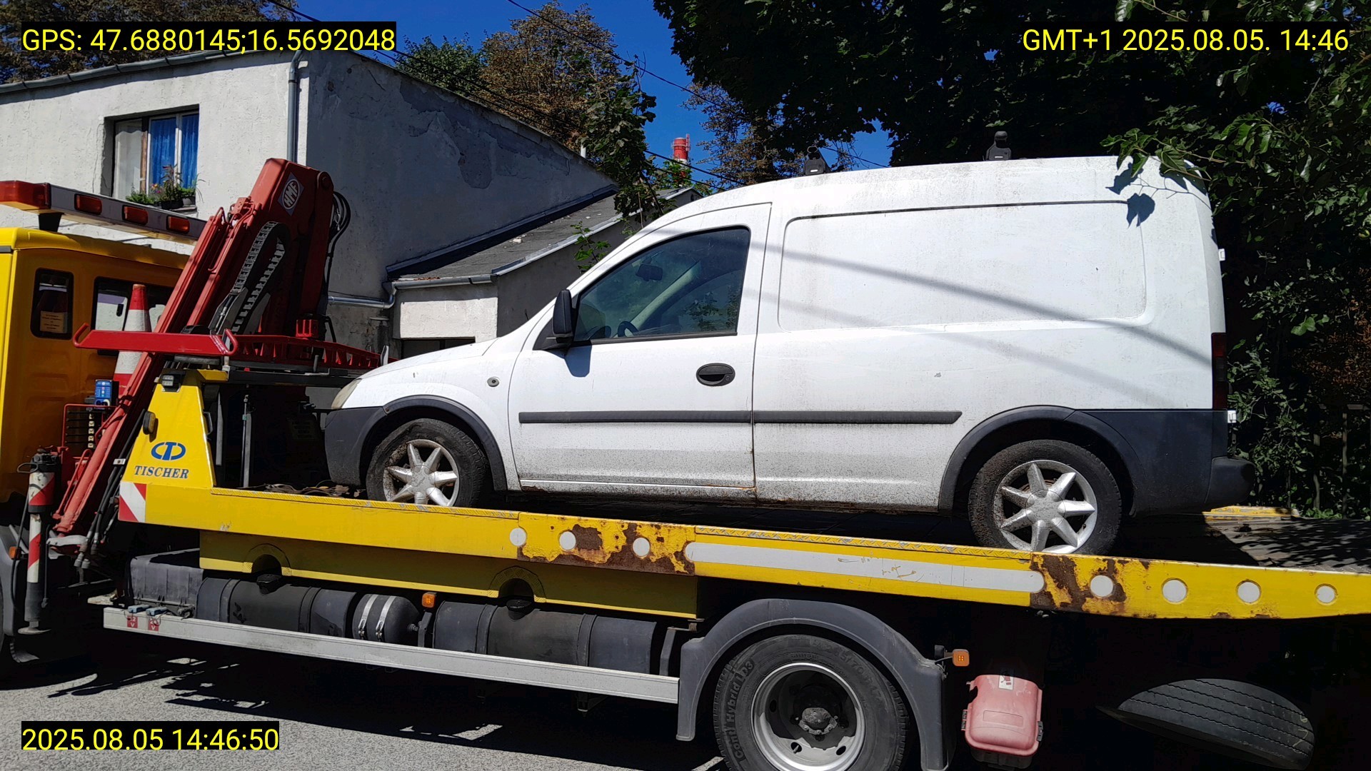 2025. május 13-án 13 óra 50perckor elszállított jármű Szabálytalan tárolás miatt Sopron, Fehér úton - hrsz 0257/2 - lévő,